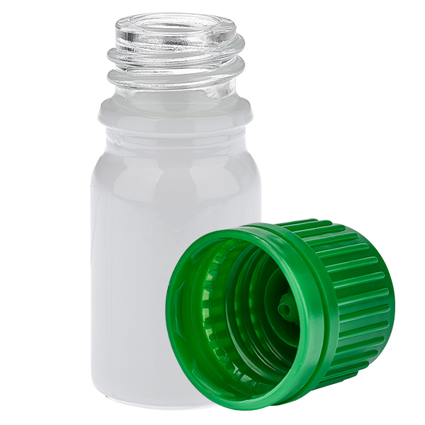 Frasco de 5 ml con tapón de seguridad verde (apertura de 11 mm) WhiteLine UT18/5