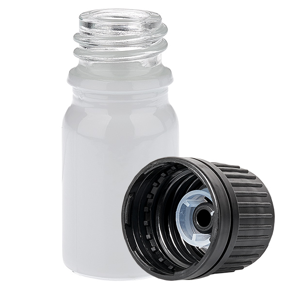 Frasco de 5 ml (glóbulos) con tapón de originalidad negro (abertura de 8 mm) WhiteLine UT18/5