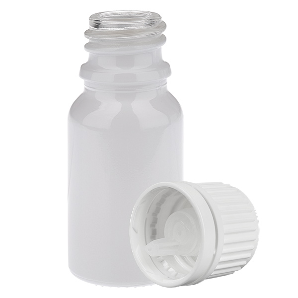 Frasco cuentagotas de 10 ml con tapón de seguridad blanco (abertura de 0,7 mm) WhiteLine UT18/10