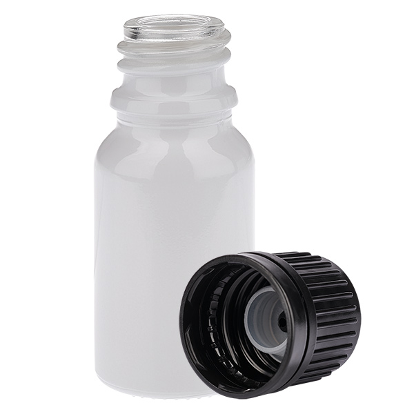 Frasco de 10 ml (glóbulos) con tapón de originalidad negro (abertura de 3 mm) WhiteLine UT18/10