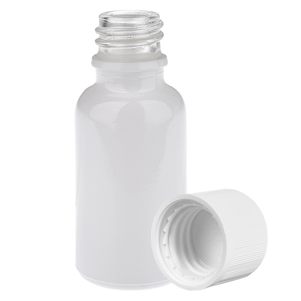 Botella de 20 ml con tapón de rosca estándar blanco y cierre de seguridad para niños (apertura de 11 mm) WhiteLine UT18/20