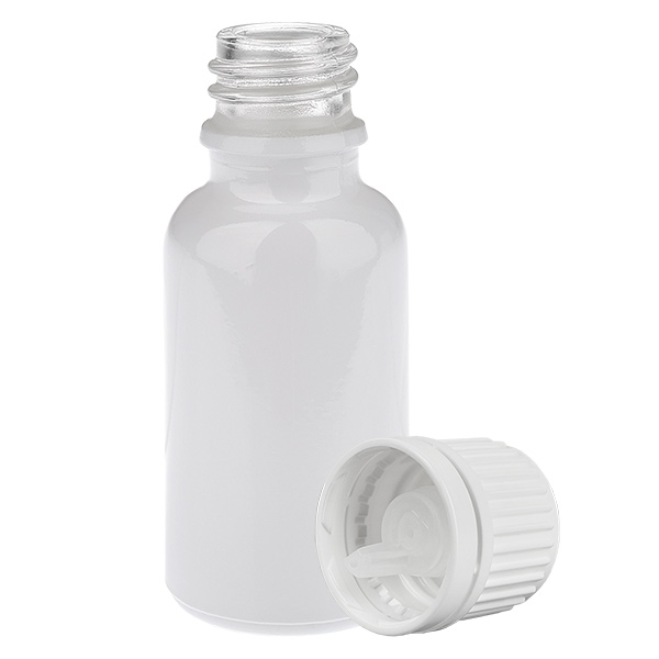 Frasco cuentagotas de 20 ml con tapón de seguridad blanco (abertura de 0,7 mm) WhiteLine UT18/20