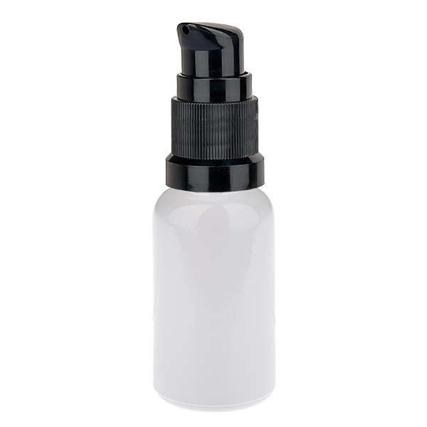 - Descripción del frasco de vidrio: Vidrio tipo III (DIN 719 o clase de recipiente III según DIN 52339-TO180). El vidrio transparente se recubre con un brillante acabado blanco en el exterior mediante un laborioso proceso. Esto garantiza una presentación de alta calidad del contenido. Se puede ver el nivel de llenado del vidrio. No obstante, el contenido está protegido de la luz solar directa.
