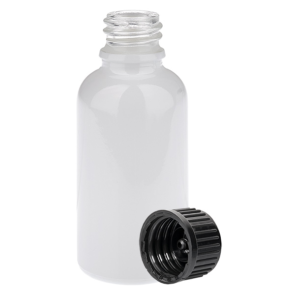 - Descripción del frasco de vidrio: tipo de vidrio III (DIN 719 o clase de recipiente III según DIN 52339-TO180). El vidrio transparente se recubre con un brillante acabado blanco en el exterior mediante un laborioso proceso. Esto garantiza una presentación de alta calidad del contenido. Se puede ver el nivel de llenado del vidrio. No obstante, el contenido está protegido de la luz solar directa.