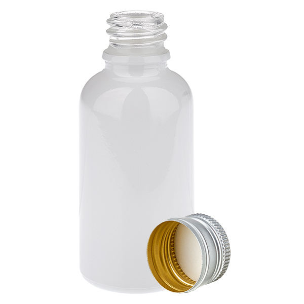 - Beschreibung der Glasflasche: Glasart III (DIN 719 bzw. Behältnisklasse III nach DIN 52339-TO180). Klares Glas wird in einem aufwändigen Verfahren an der Aussenseite glänzend weiß beschichtet. Dies sorgt für eine hochwertige Präsentation des Inhaltes. Sie können den Füllstand des Glases erkennen. Der Inhalt ist trotzdem vor direkter Sonneneinstrahlung geschützt.