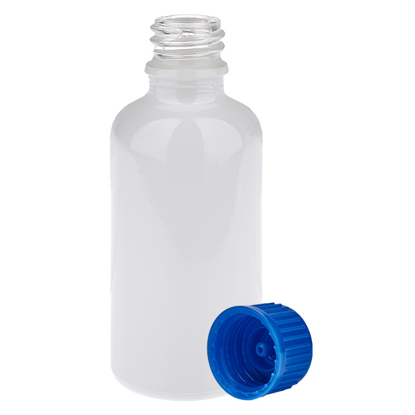 Botella de 50 ml con tapón de rosca estándar azul (apertura de 11 mm) WhiteLine UT18/50