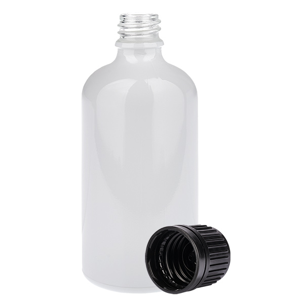 Botella de 100 ml con tapón de seguridad negro (apertura de 11 mm) WhiteLine UT18/100