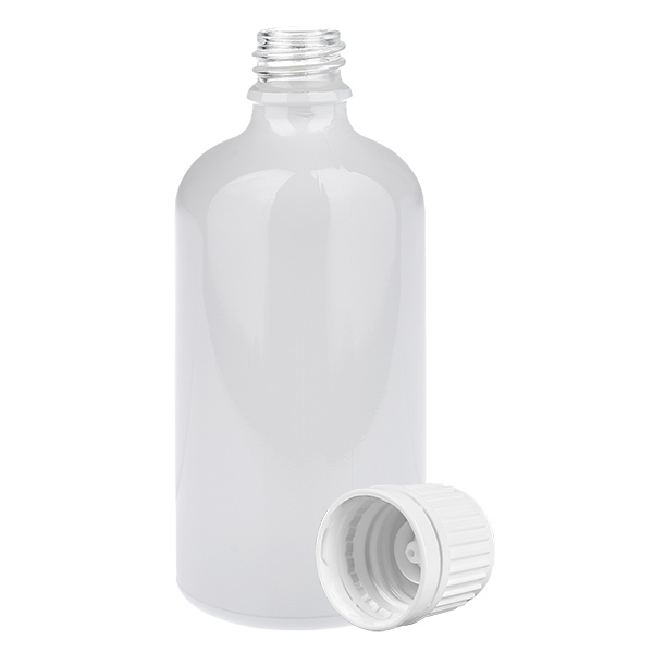Botella de 100 ml con tapón de seguridad blanco (apertura de 11 mm) WhiteLine UT18/50