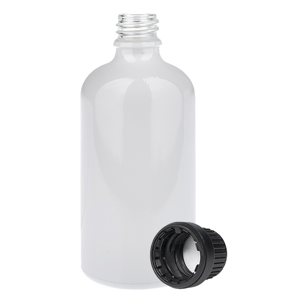 Botella de 100 ml con tapón de seguridad negro (apertura de 11 mm) WhiteLine UT18/100