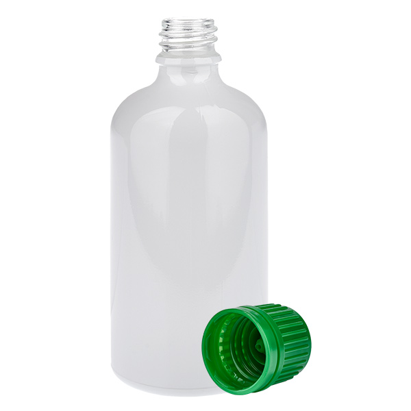 Botella de 100 ml con tapón de seguridad verde (apertura de 11 mm) WhiteLine UT18/100