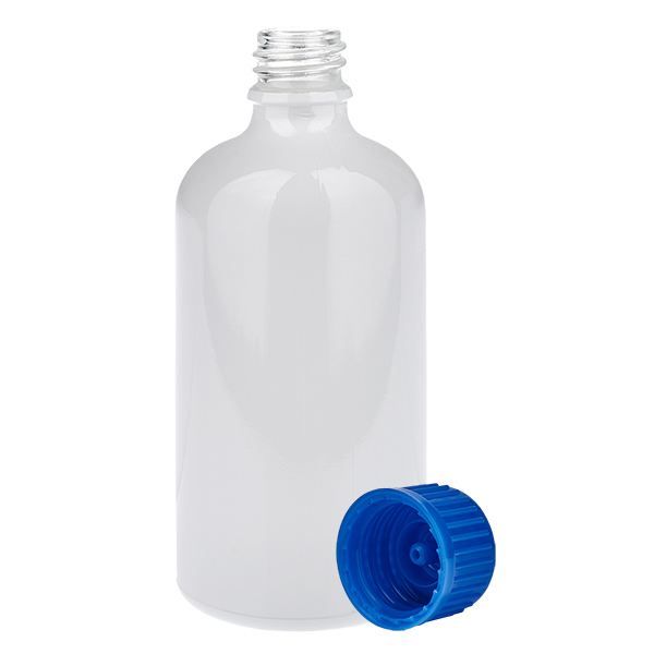 Botella de 100 ml con tapón de rosca azul (abertura de 11 mm) WhiteLine UT18/100