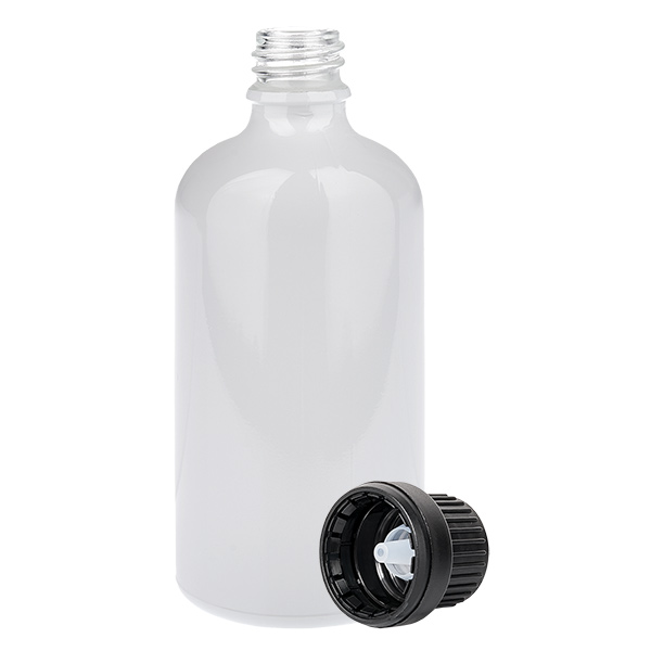 - Descripción del cierre: cuentagotas con tapón de rosca. Rosca DIN18. La tapa de plástico tiene OV (= cierre de originalidad, seguridad contra la primera apertura).