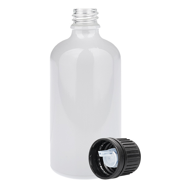 Frasco cuentagotas de 100 ml con tapón de seguridad negro (abertura de 1 mm) WhiteLine UT18/100