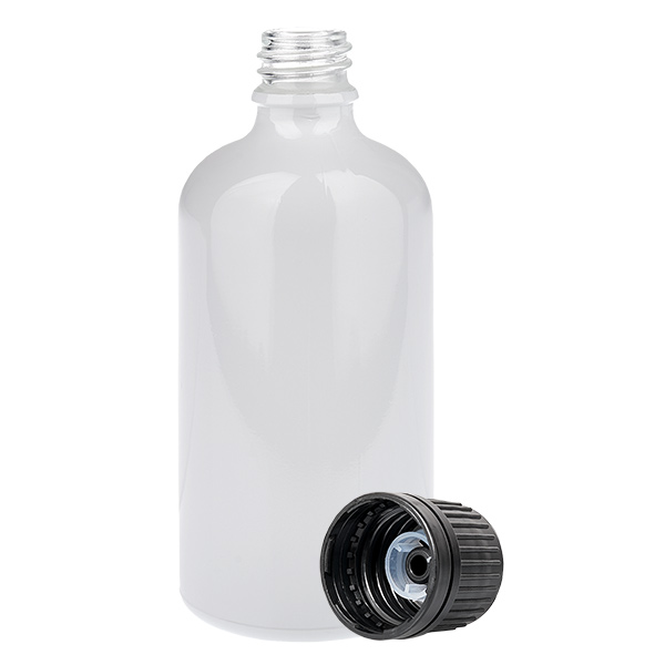 Frasco de 100 ml (glóbulos) con tapón de rosca negro estándar (apertura de 8 mm) WhiteLine UT18/100
