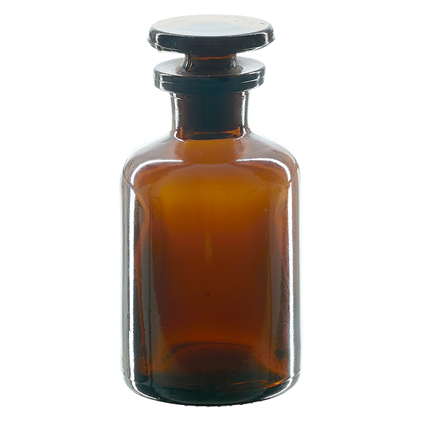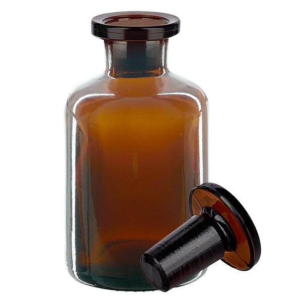 Frasco de farmacia de 50 ml, cuello estrecho, vidrio ámbar, con tapón de vidrio