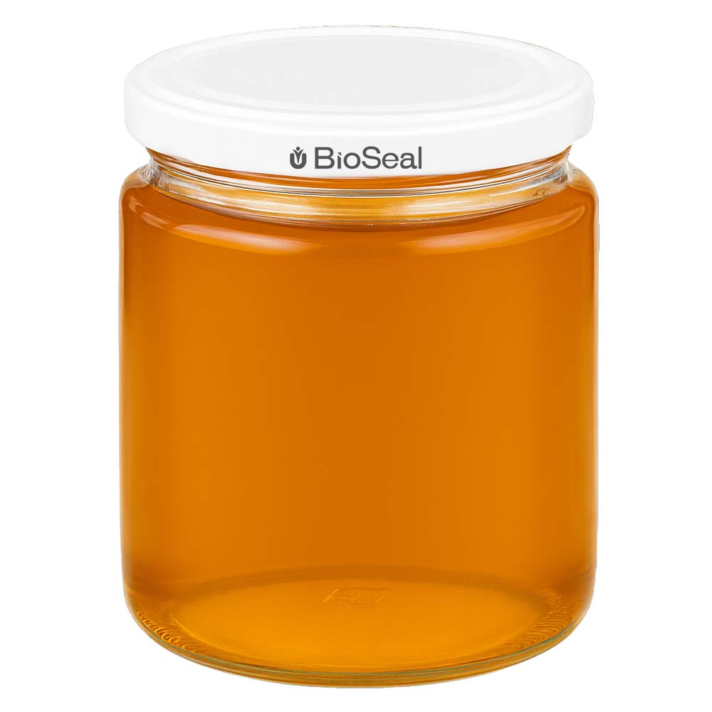 Tarro para miel de 350 g con tapa blanca BioSeal UNiTWIST