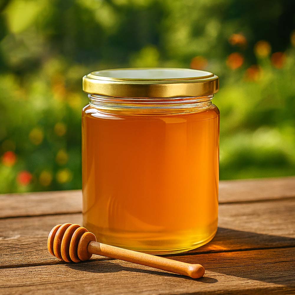 Tarro de miel de 350 g con tapa dorada BasicSeal UNiTWIST – perfecto para ventas directas,...