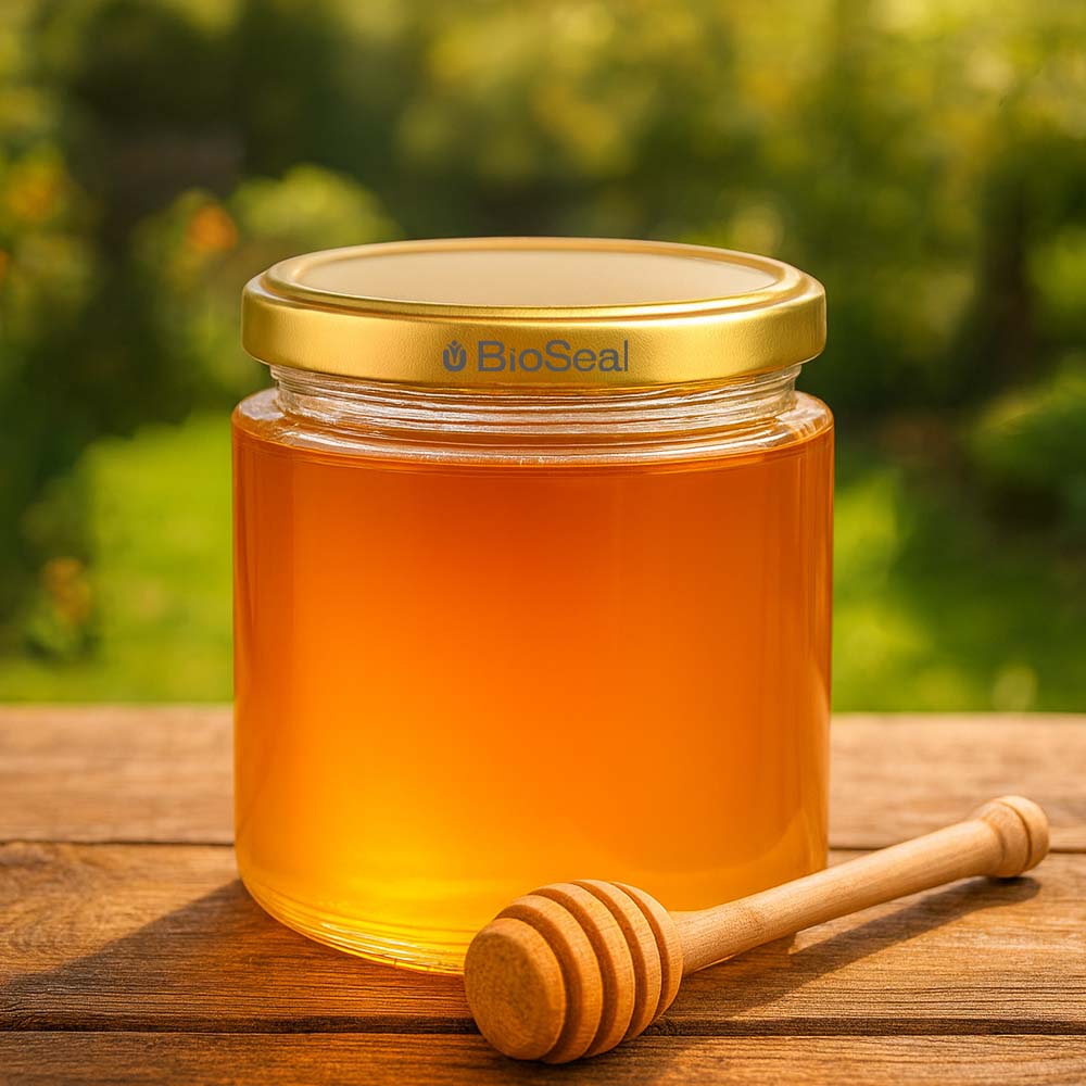 Tarro para miel de 350 g con tapa dorada BioSeal UNiTWIST