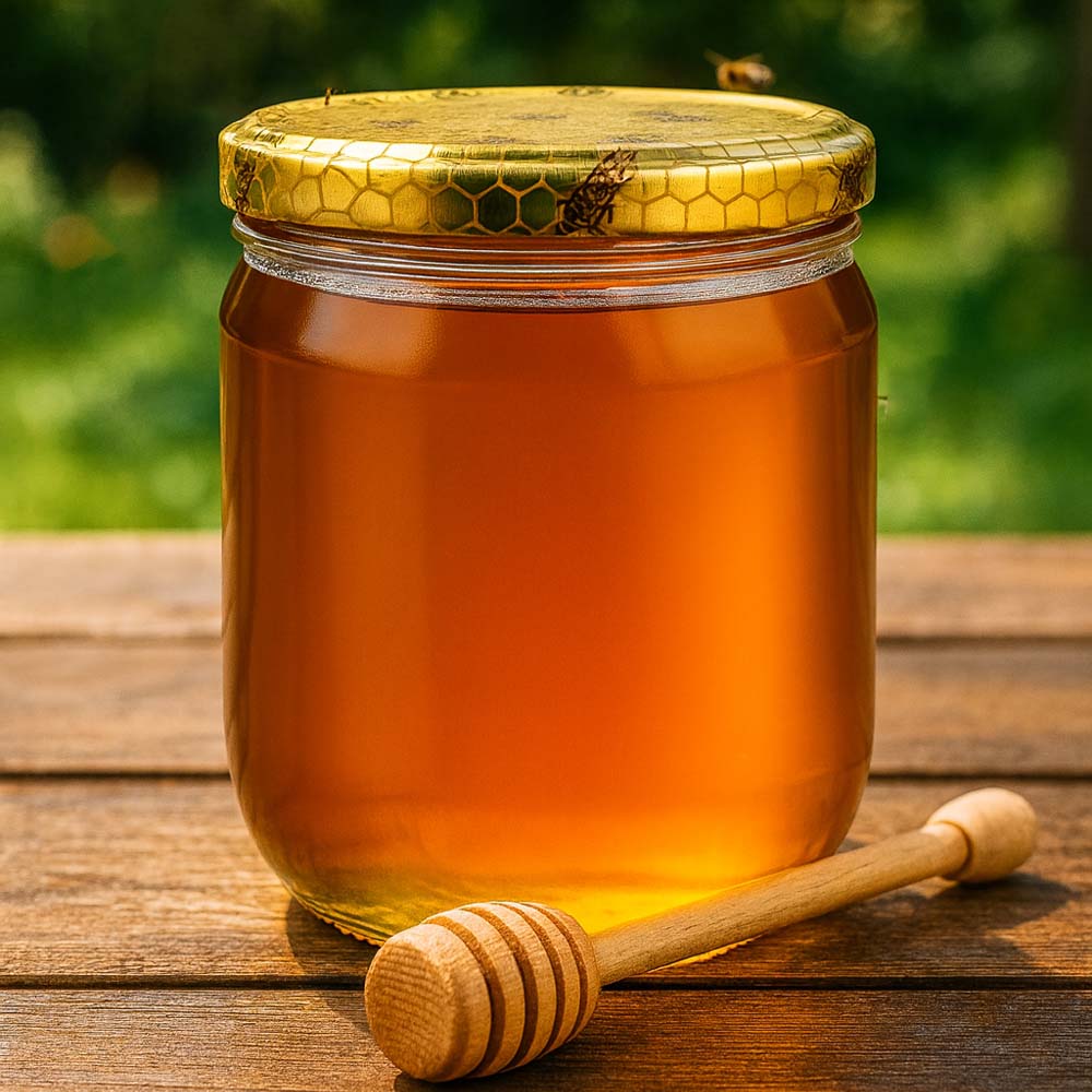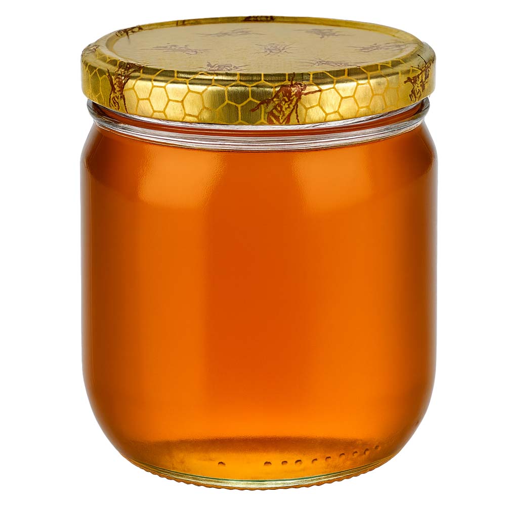 Tarro de vidrio para miel de 500 g con tapa metálica decorada con diseño de panal BasicSeal...más