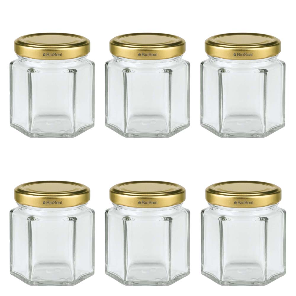 Tarro de vidrio para miel de 60 g con tapa dorada BioSeal UNiTWIST – perfecto para muestras,...