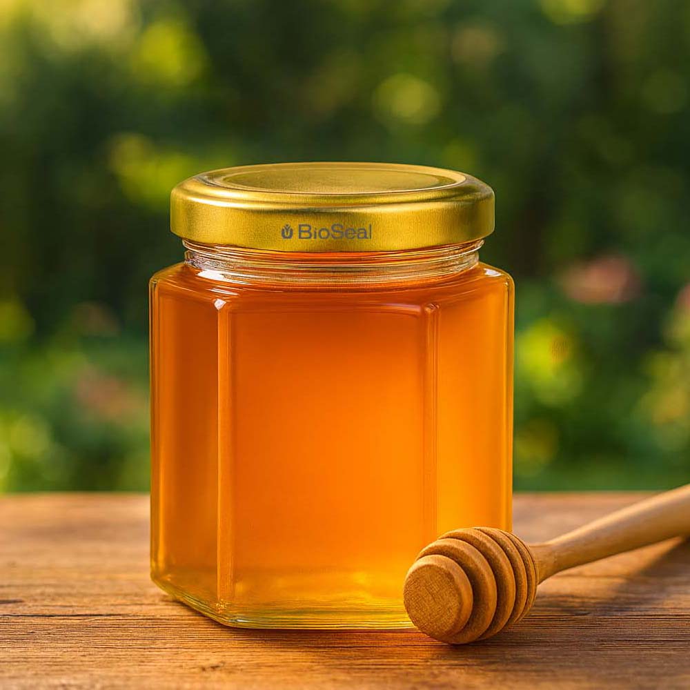 Tarro para miel de 60 g con tapa dorada BioSeal UNiTWIST